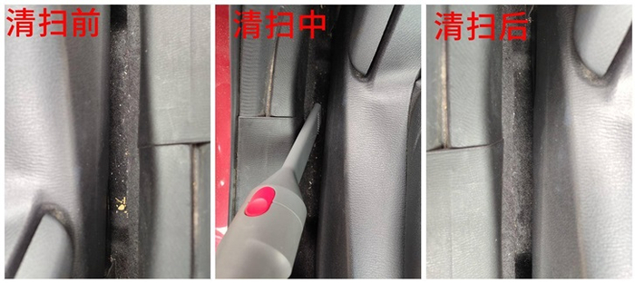 借助于 6倍伸缩软管和缝隙清洁吸头,你还可以实现对车内环境的清洁,比如座椅两侧和下方、中控台缝隙等等区域,能都清扫的干干净净。