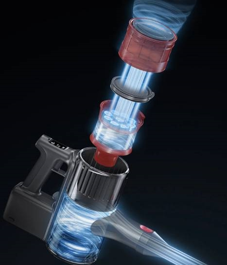石头手持无线吸尘器H6采用5层高效过滤系统,整机过滤效率可达99.97%以上,对0.3-10μm的微粒过滤效率可达 99.995%实现真正的“零”排放。