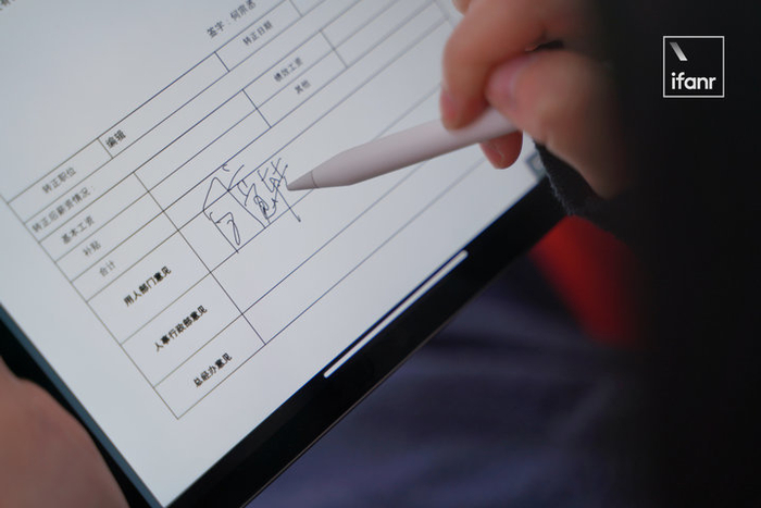 而在之后的文档扫描应用中,相机的作用则是被用于文档扫描,将纸质版文件扫描进 iPad 里,拿起 Apple Pencil 签字、发送,一气呵成。