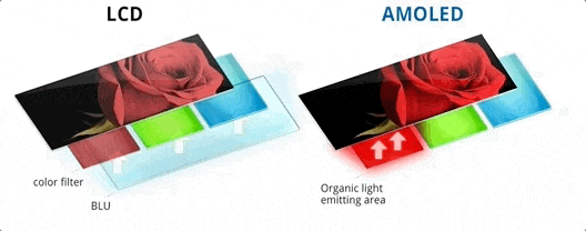 LCD屏幕全称为Liquid Crystal Display,因为它不具备自发光特性,因此需要背光板支持;另外,由于需要透过两层玻璃、光学膜片、配向膜和彩色滤光片等来产生偏光效果,所以会比OLED屏幕厚很多。LCD发展历史很久了,技术成熟让它的制作成本更低,所以同级别的LCD屏幕手机会比OLED屏幕手机更便宜。