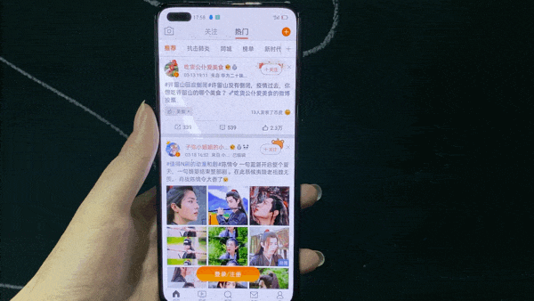 将realme 真我X50 Pro拿到手中,第一眼就被它的屏幕所吸引——realme真我X50 Pro采用超大6.44英寸三星 Super AMOLED双盲孔屏,更小的开孔直径让手机的屏占比高达92%,顶部的双盲孔设计也不会影响手机的正面视觉效果,依旧给人一种正面全是屏幕的感觉。
