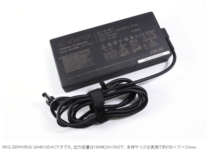 据介绍,华硕幻14 的电源适配器为180W,20V9A供电,尺寸约为50×71×23mm。