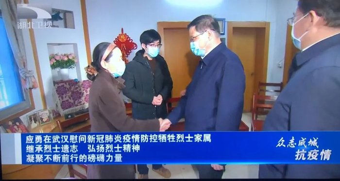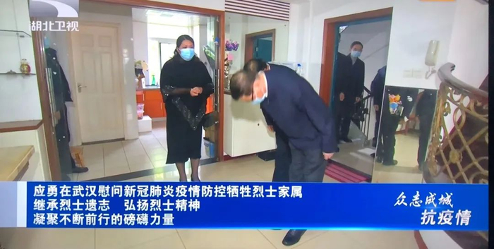 据湖北卫视报道,4月4日下午,湖北省委书记应勇和武汉市委书记王忠林一起在武汉市看望慰问了李文亮、刘智明和吴涌三位新冠肺炎疫情防控牺牲烈士家属。