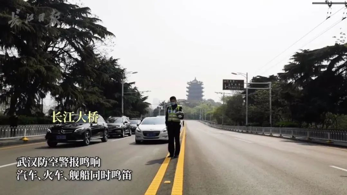 上午10时整,凄厉的警报声回荡在武汉三镇上空,江面上船只笛声长鸣,街头信号灯集体调整为红灯,路面所有车辆停驶3分钟。武汉地铁同步暂停,全列车乘客集体起立默哀。