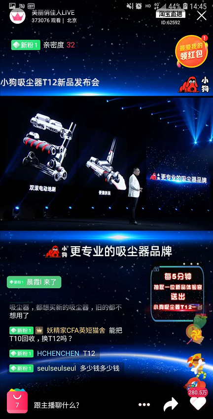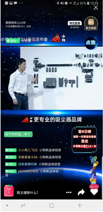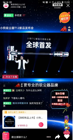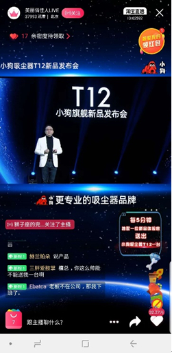 4月2日,小狗吸尘器T12新品发布会通过“美丽俏佳人”现场直播与消费者见面,小狗电器CEO檀冲亲自上台宣布了这一“战略级新品”。