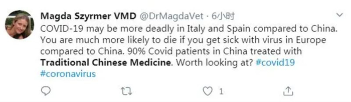 在海外社交媒体上,多国网友纷纷表达了对中医药的期待与信任。美国网友Magda Szyrmer VMD说:与中国相比,意大利、西班牙等国的新冠肺炎患者死亡率可能更高。中国90%的新冠肺炎患者都接受了中医药治疗。是不是值得了解一下呢?