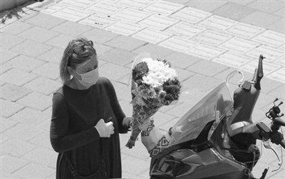 然而,为防止新冠肺炎疫情蔓延,以色列政府下达了节日期间限制出行措施。于是7日白天在限制令实施前,人们赶着为亲人或朋友送鲜花、礼物和食品,祝节日愉快。图为一女士为亲人送花。本报驻以色列记者 毛黎摄