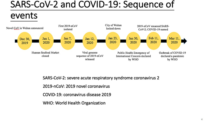 这里有几个名称,SARS-CoV-2,这是国际病毒命名委员会给新病毒的命名,当然有些科学家对此有不同意见,规范起见我们还是叫它SARS-CoV-2,另一个名字是2019新冠病毒,世界卫生组织就叫做它2019年冠状病毒病也就是COVID-19,SARS-CoV-2和COVID-19这两个专有名词我们会在讲座中提到。