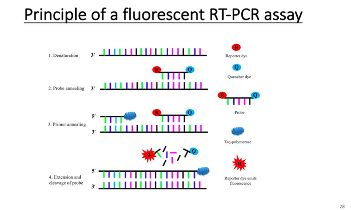 这个是RT-PCR检测方法,主要是通过荧光定量PCR作出检测,是我们现在做特异性诊断的看家法宝。