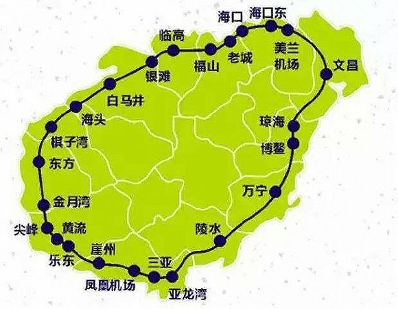 实际上,此前已有省内的环形动车组开行,最早是海南环岛高铁。海南环岛高铁由东环和西环构成,其中东环线路于2010年12月30日开通,西环线路于2015年12月30日开通。此后便开通了三亚-三亚、海口东-海口东的列车,全程耗时在5小时以内。如今,海南环岛高铁每日开行25趟,节假期会增至33趟。