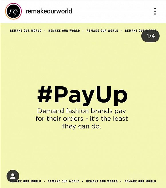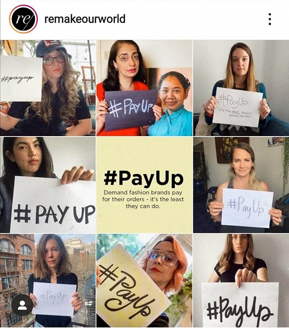 Remake希望更多品牌参与进来。在4月3日发起了请愿活动“Pay Up(全部付清)”,集齐了千余供应商签名,通过邮件发送给包括Inditex、Vans、Calvin Klein母公司PVH集团、沃尔玛等零售商CEO。由于H&M集团此前并未声明何时对已取消订单付款,再次被Remake加入名单中。