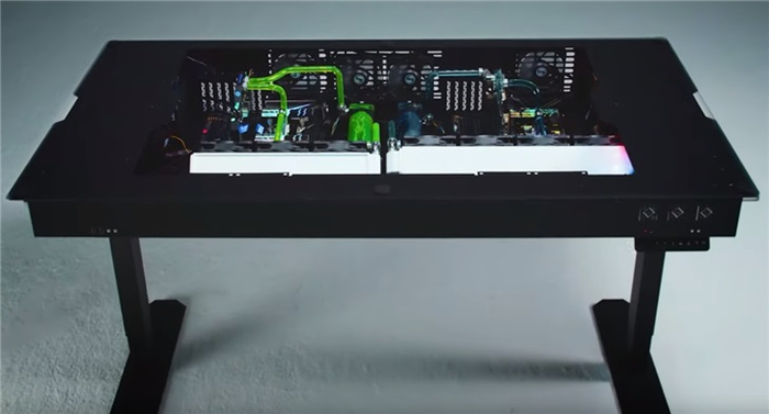 联力新款DK-04F和DK-05F机箱电脑桌搭载了电动高度调整装置,机身可以承受80公斤的重量,机箱内可以容纳两个完整的ATX系统。