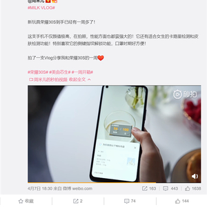 4月13日消息,时尚博主@周米儿体验了一周多时间的荣耀30S。