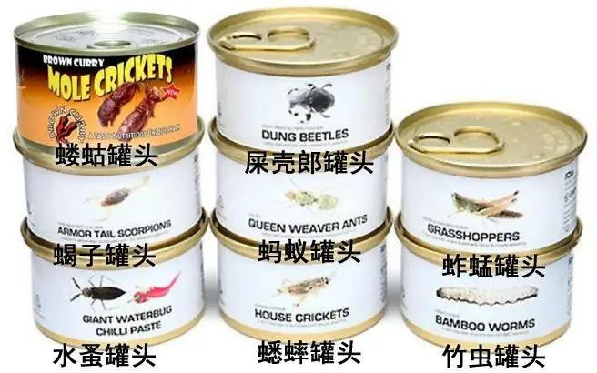 不只是蚕蛹,喜欢其它高蛋白食物的朋友,还有更多选择,因为国外的昆虫罐头品种齐全。