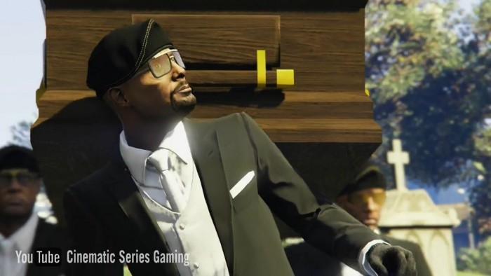 油管UP主Cinematic Series Gaming尝试在《GTA5》游戏中再现了一下最近非常流行的抬棺舞,一起来欣赏一下这位UP主的搞怪创作。根据介绍,视频制作者使用了Script Hook V和Menyoo PC Trainer两款MOD,经过编辑之后在洛圣都重现了这段“流行舞蹈”。