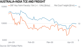 普氏能源资讯早些时候报道称,SAIL、JSW Steel、塔塔钢铁(Tata Steel)和阿塞洛-米塔尔(Arcelor Mittal)已经削减了产量,其中SAIL将开工率降低了30%,使产量减少了40万吨/月。这导致对冶金煤(炼钢的重要组成部分)的需求急剧下降。