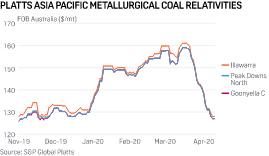 根据普氏能源资讯数据,亚太冶金相关的煤价从3月31日至4月9日,每吨平均下跌1.90美元。每个炼焦煤品类的价格都接近普氏能源咨询开始评估(2019年11月1日)以来的最低值。