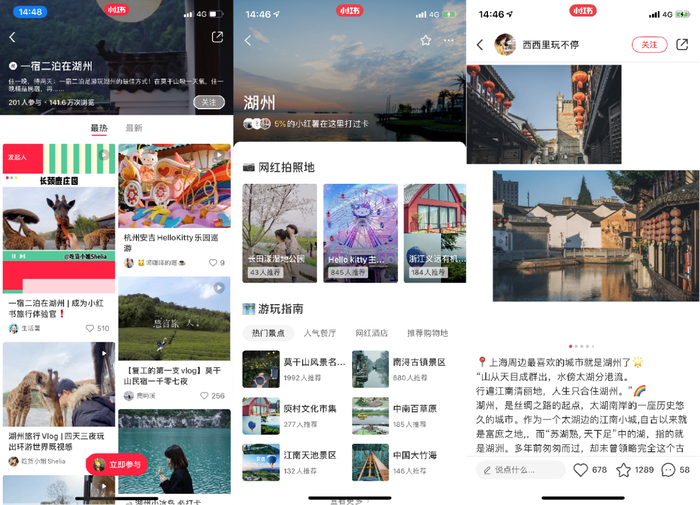 在与湖州的合作中,小红书将围绕“一宿二泊在湖州”的话题,通过社区运营,以直播、视频、图文等多种形式发布湖州文旅相关内容,积蓄旅游消费意愿,推动用户疫后在网红景点、路线、民宿进行线下打卡。