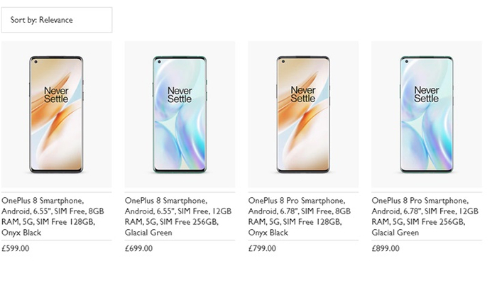 今天,英国零售商John Lewis网站泄露了一加8和一加8 Pro的所有定价细节。两款智能手机都将提供两种不同的版本:8GB内存+128GB存储、12GB内存+256GB存储。