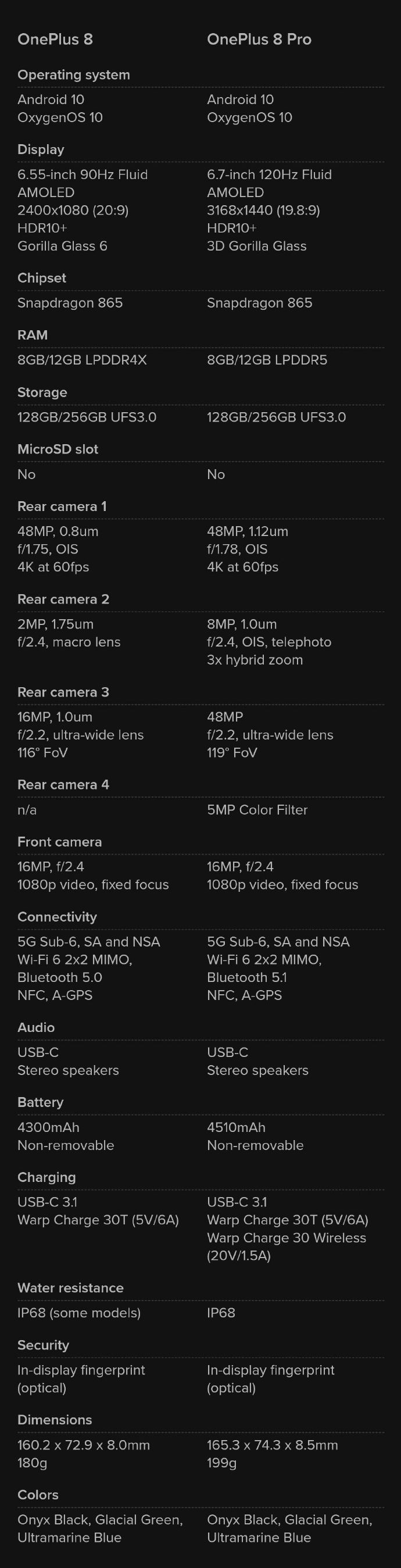 一加8和一加8 Pro显然是同一系列的两款手机,但不同尺寸的设备并不相同-这些手机具有不同的规格、功能和质量。