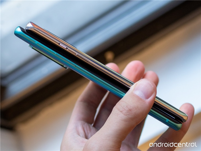 在外观设计方面,先将两部手机放在同一位置。尽管大小不同,它们的外部硬件质量和设计几乎相同。你会看到相同的弯曲边缘,立体声扬声器,按钮位置甚至相机布置,一目了然。颜色虽然不相同,但是它们是相似的:你可以同时获得黑色或亚绿色的光泽,或者一加8上带有光泽的“银白色”,而一加8 Pro上则带有亚光的“深蓝色”。