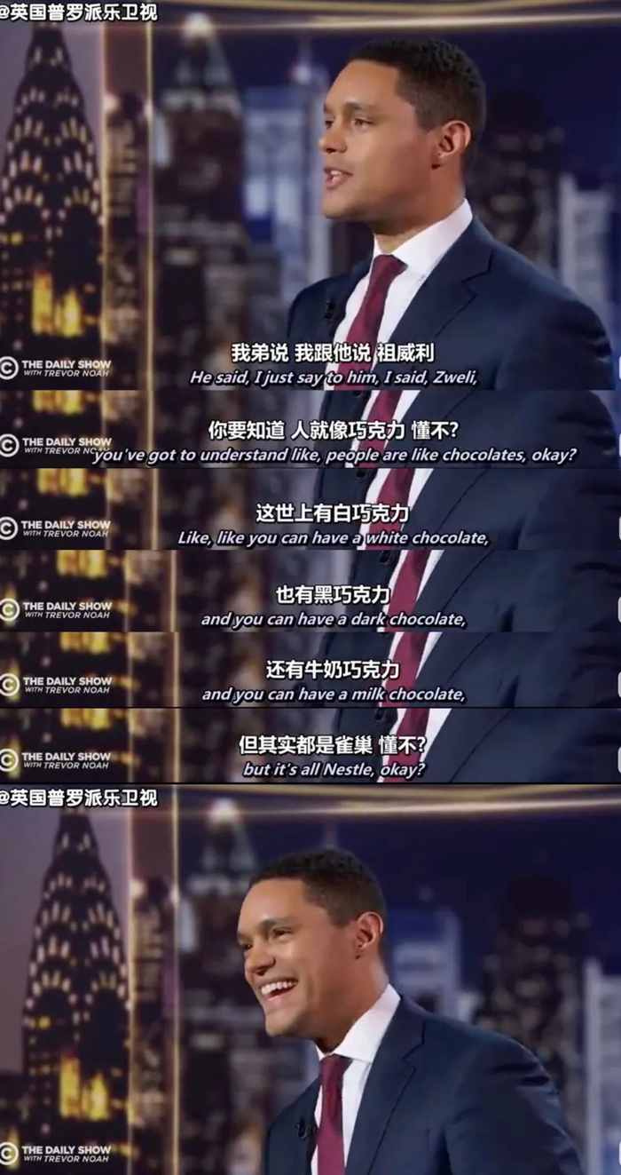 因为《每日秀》是个现场直播的节目,每次播广告的时候,主持人就必须跟观众聊聊天,那个时候理论上是不对外播放的。但崔娃很真实地聊了自己作为黑人在美国受到的一些不公正待遇,后来这些片段被节目组自己传上YouTube,特别火爆。