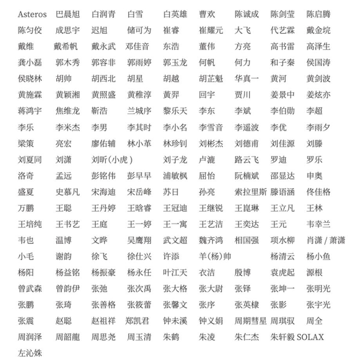 感谢以下187位青年导演参与此次调研(依姓氏拼音首字母横向排序)。