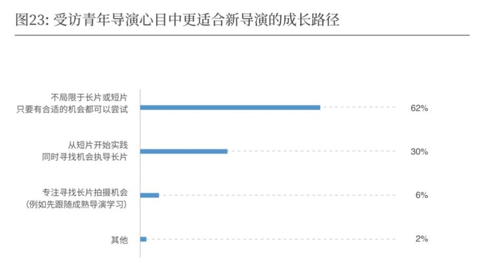 创作者当以内容为先。正如我们问及新导演更适合怎样的成长路径时,有30%的人认为短片出道更为妥当,超过六成人则表示不必拘泥于长片或短片,有机会创作好内容就可以。