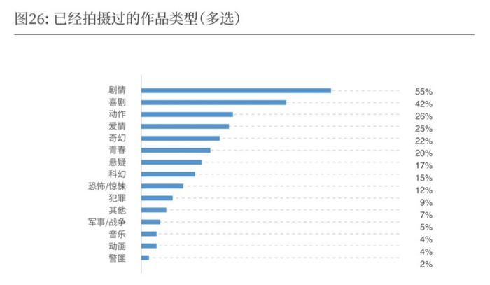 62%的受访者已经拍过长片/剧集