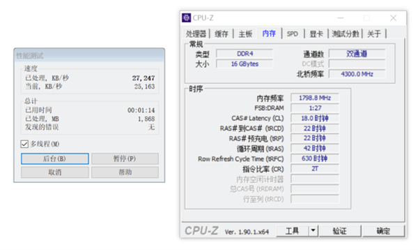如图,通过测试成绩我们可以看到,内存频率的高低对解压缩的成绩影响依旧十分明显。