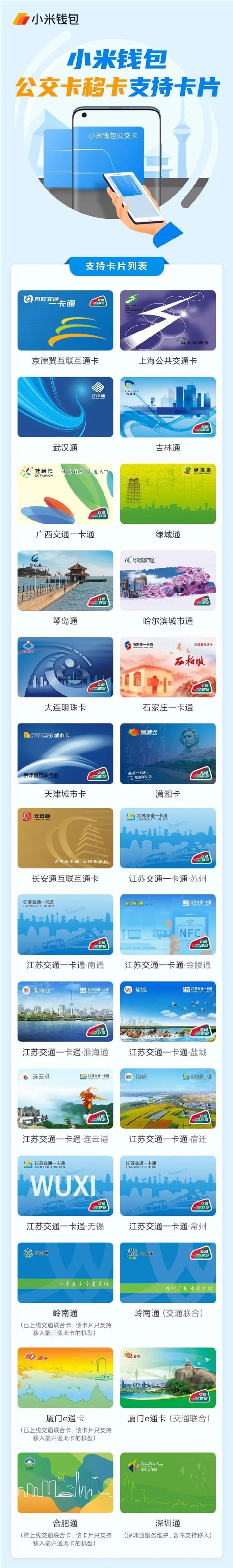 IT之家4月21日消息 小米钱包今天宣布,小米钱包公交卡已经支持28张卡片移卡,支持卡片包括京津冀互联互通卡、上海公共交通卡、武汉通、吉林通、广西交通一卡通、绿城通、琴岛通、哈尔滨城市通、大连明珠卡、石家庄一卡通、天津城市卡、潇湘卡、长安通互联互通卡、江苏交通一卡通·苏州、江苏交通一卡通·南通、江苏交通一卡通·金陵通、江苏交通一卡通·淮海通、江苏交通一卡通·盐城、江苏交通一卡通·连云港、江苏交通一卡通·宿迁、江苏交通一卡通·无锡、江苏交通一卡通·常州、岭南通、岭南通(交通联合)、厦门e通卡、厦门e通卡(交通联合)、合肥通、深圳通等。