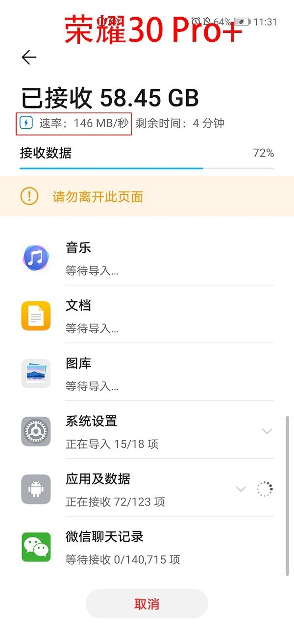 我们分别以Wi-Fi直连的形式测试二者实际表现,其中小米10 Pro与红米K30 Pro直连,荣耀30 Pro+与荣耀30 Pro直连,这四者均支持Wi-Fi 6(官方商城数据)。也就是说,当数据通过无线传输时,小米10 Pro与荣耀30 Pro+均能在Wi-Fi 6“高速道路”上进行。实际表现上,小米10 Pro最高无线传输速度为22.6Mb/s(即180.8Mbps),而荣耀30 Pro+最高无线传输速度为146Mb/s(即1168Mbps)。