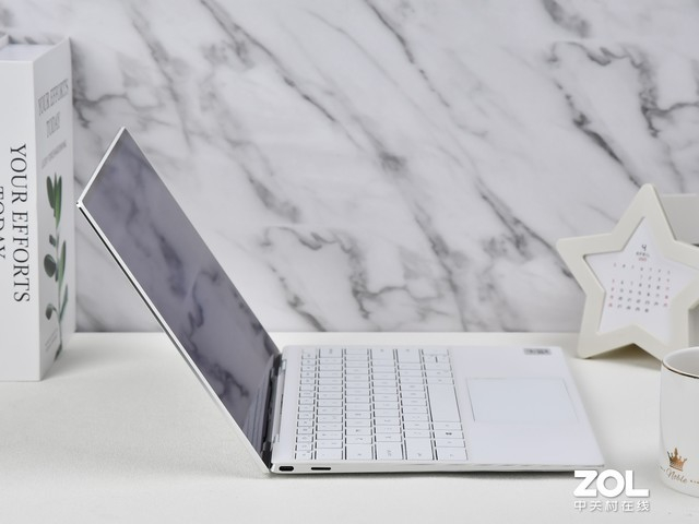 新款XPS 13拿在手里非常轻盈,外壳表面触感细腻柔和,又不失金属的硬朗感。整个产品的做工极为严谨,不同材质面板之间严丝合缝,可以说是教科书般的旗舰机品质。