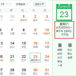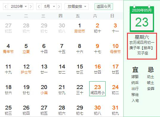 鼠年的这个“闰四月”从阳历5月23日开始至阳历6月20日结束。