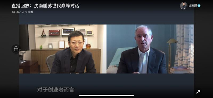 23日晚间,红杉资本全球执行合伙人沈南鹏与黑石集团联合创始人、董事长兼CEO苏世民通过视频连线进行了一场巅峰对话。同为耶鲁校友,两位顶级投资家针对全球经济形势出现的新变化,当前环境下如何调整企业管理和投资策略,以及时下年轻人关心的人生理想、职业选择等问题,双方展开交锋。