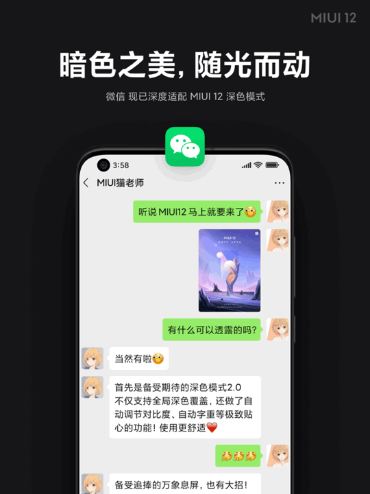微信、QQ、WPS 已适配小米 MIUI 12 深色模式 2.0
