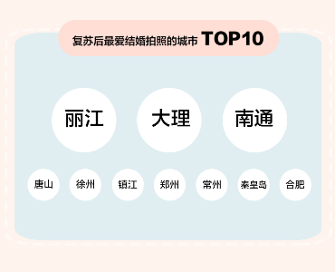 仪式感或许会因为疫情迟到,但是爱情永远都不会缺席。丽江、大理和南通以秀丽风光和厚重的风土人情,成为复苏后情侣最爱拍结婚照的城市之一。