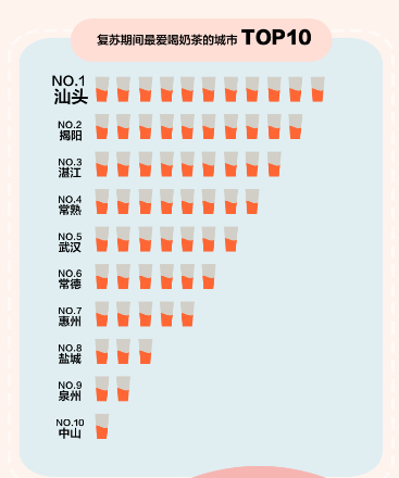 没有一杯奶茶可以空着离开汕头。在最爱喝奶茶城市榜上,汕头独占鳌头,遥遥领先揭阳、湛江、常熟、武汉等城市。
