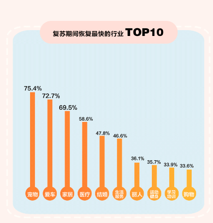 居家隔离,怎么能少得了“毛孩子”的悉心陪伴。作为回馈,养宠人士也用买买买的实际行动,让宠物行业以75.4%的增幅,成为恢复最快的行业。