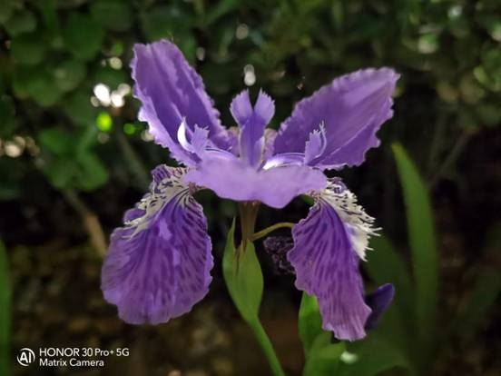 反观荣耀30 Pro+的样张,鸢尾花蓝紫色看起来更加浓艳,接近白天正常的色彩,而且上面的纹路也清晰可变。