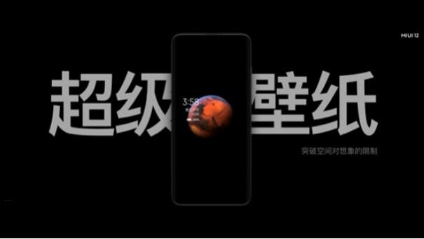 MIUI12系统动画通过自研渲染引擎、动画引擎、插画引擎等诸多创新技术,全面提升系统体验。全新系统通过高级混色和控制级实时模糊处理,还原了真实光影;依托物理引擎,系统图标得以呈现优雅的空间运动;依托动态窗体技术,带来了完美的横竖屏动画效果。继像素、拟物、扁平设计风格后,MIUI12引领了全新设计风格——通感可视化设计。和MIUI11相比,全新系统UI设计焕然一新。MIUI12通过数据可视化、信息可视化、状态可视化等诸多新设计风格,实现了跨越语言和文化的高效人机交互方式。全新MIUI12在设计和美学方面实现了革命性创新。从用户第一视角出发,贯穿整个系统设计主线,给用户带来置身其中的真实感受,创造了安卓领域更具冲击力的全新体验,全方位媲美iOS。MIUI12触碰想象除iOS外世界顶尖美学和动效之选整个发布会MIUI部分的高潮来自于超级壁纸,小米MIUI是全球首个实现息屏、锁屏与系统桌面完美打通的手机系统品牌。在MIUI12中将火星、地球两颗星球带到用户指尖,方寸之间便可体验穿越空间的神奇之旅。