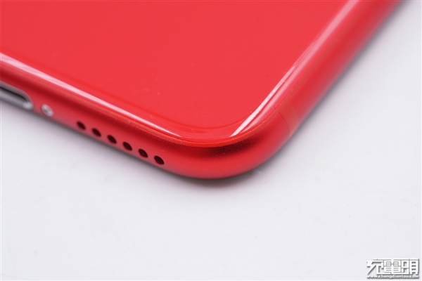 背面是非常能引起注意力的红色背板,和iPhone8系列不同的是此次iPhone SE背面的Logo被下调放置在了中间的位置上。