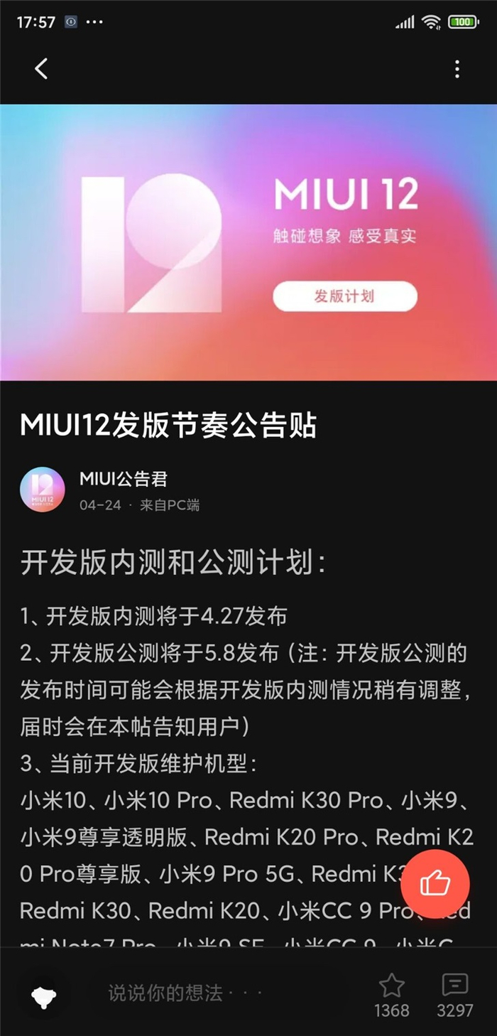 PS:Pad系列无MIUI12开发版和稳定版发版计划;上述机型发版时间可能会根据实际测试情况有所调整,若有更改,会在告知用户。