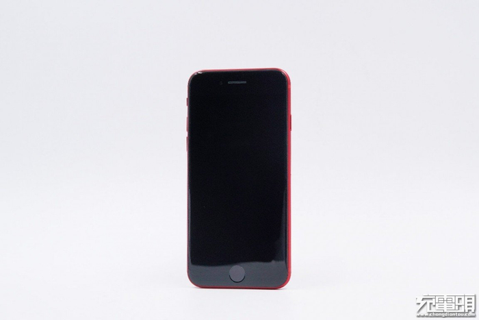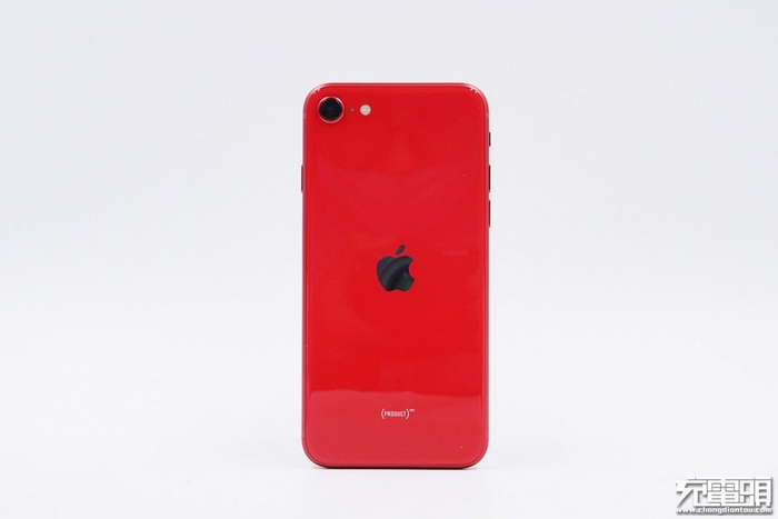 背面是非常能引起注意力的红色背板,和iPhone8系列不同的是此次iPhone SE背面的Logo被下调放置在了中间的位置上。