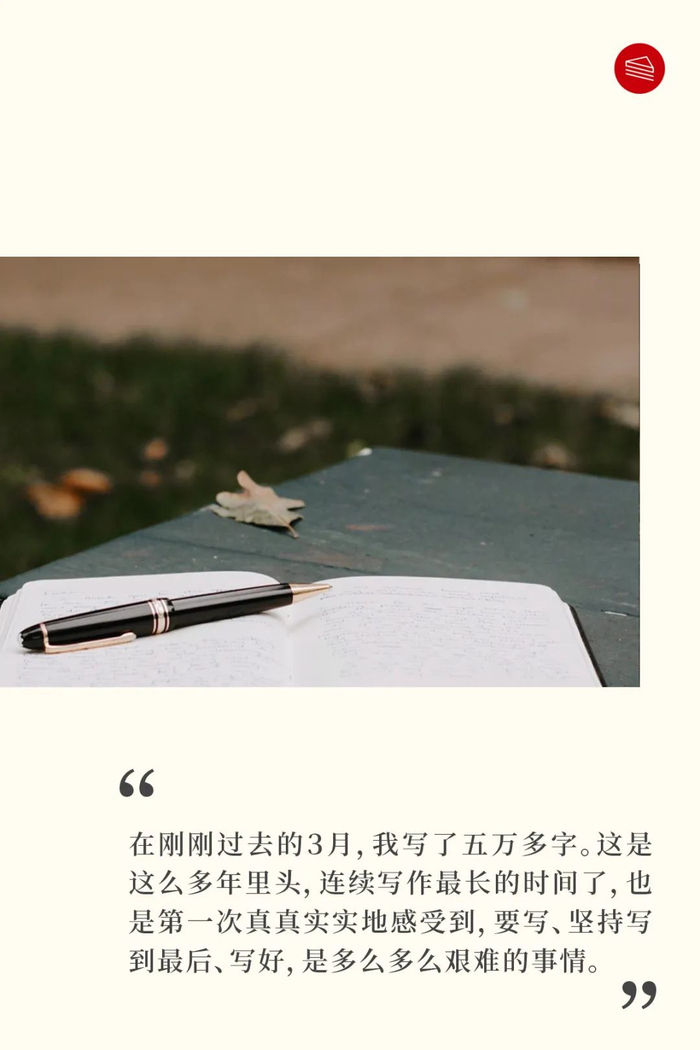 不过又用了一整年,我才得以真正敢于踏上“写作”这条路。过去的那一年,一直在梳理与道别,试图把自己38年来的人生看清楚一点,看到恐惧的真正源头,最后与其和解接纳。在刚刚过去的3月,我写了五万多字。这是这么多年里头,连续写作最长的时间了,也是第一次真真实实地感受到,要写、坚持写到最后、写好,是多么多么艰难的事情。我也开始明白,坚持背后的热爱驱动也是多么重要。
