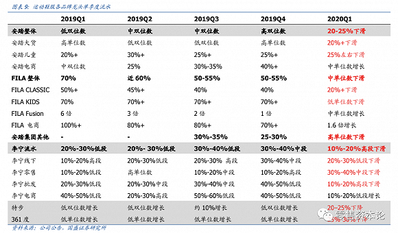 受新冠疫情影响,春节后各品牌服饰受关店影响线下流水下滑严重,电商拉动下运动鞋服龙头表现好于行业平均水平。