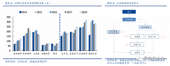国盛证券分析师通过分析库存形成的过程,认为加盟模式下的公司报表端存货周转天数为70-100天左右,直营模式的周转天数在加盟基础上增加 2-3 个月。