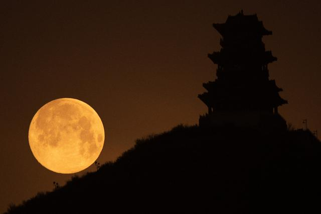 如果你所在城市没有这样的高地,也可以选择一些有特色的地景搭配月亮。比如上图是新疆喀什高台民居上空升起的满月照片,展示了当地土色房屋的独特魅力,仿佛在诉说着喀什上千年的故事。
