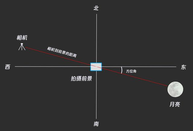 为什么叫科学的拍摄月亮呢?大家先看这个示意图和拍摄的现场照片。拍摄时,需要保证月亮、前景(嘉峪关)和相机三者在同一直线。