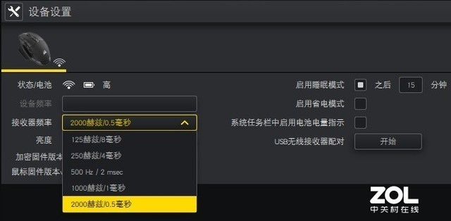 必须注意的是,如果你想要极限性能,需要在驱动最上方的一条菜单栏中找到【设置】菜单,在里面开启2000Hz模式。不然,鼠标的默认回报率还是常见的1000Hz。毕竟,开启2000Hz回报率,会带来不小的续航压力。